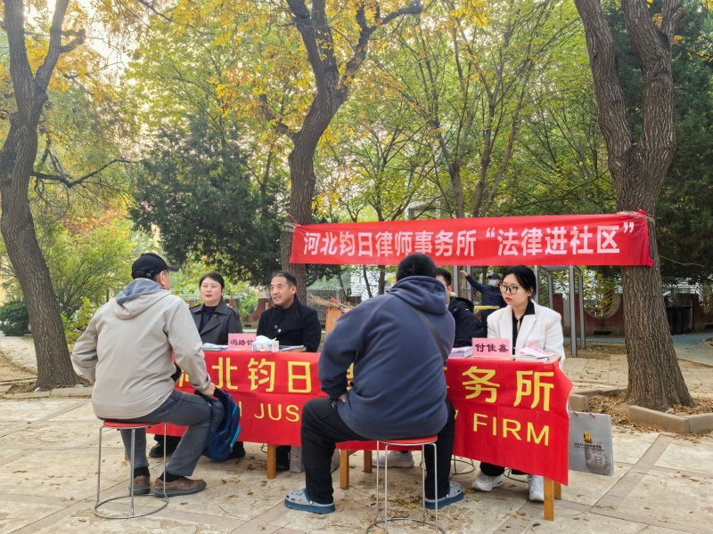 2025年11月5日,河北钧日律师事务所党支部组织律师走进联盟居民小区,会同新华区联盟社区共同开展公益法律服务活动。冯路钧主任、张朝阳书记来到现场,与律师们一起共同解答法律咨询,指导居民正确处理家庭矛盾、社区纠纷等法律事务,取得较好社会效果。