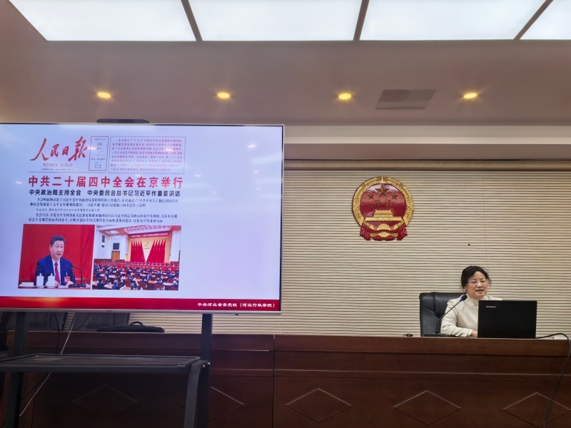 闫利平教授围绕全会四中全会的重大意义、“十五五”规划《建议》、总体要求与核心原则、“十五五”时期主要发展目标等重要内容进行深入解读和阐释。与会全体人员深入学习领会、全面准确把握党的二十届四中全会的重大意义、精神实质和实践要求,把思想和行动统一到全会精神上来,把智慧和力量凝聚到实现全会确定的各项目标任务上来,以全新面貌做好各项工作。