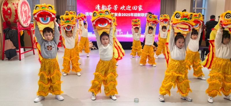 “温暖一家亲”的联欢活动中,瀚林学校学生表演舞狮,校友们表演合唱、诗朗诵、艺术体操等节目,穿插多轮抽奖与趣味游戏,现场气氛热烈。联欢在大合唱《明天会更好》中圆满结束。